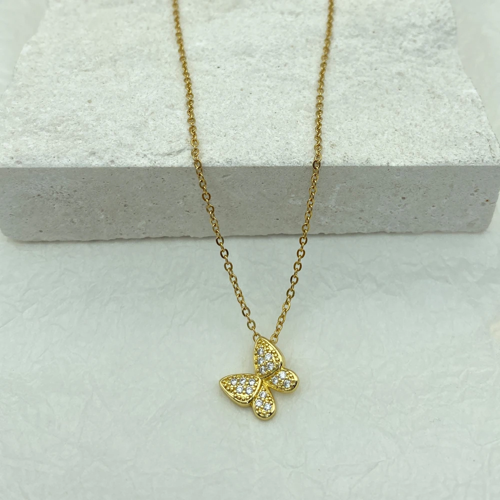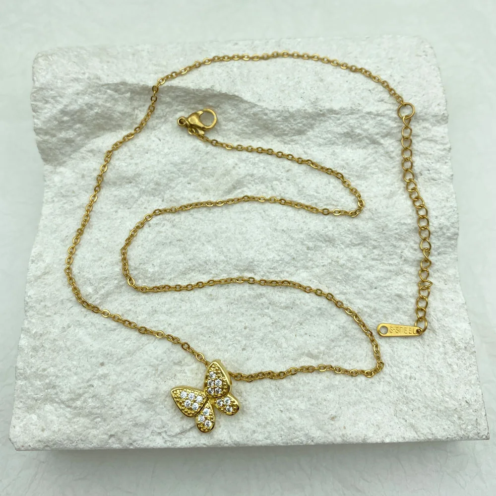 Gold Plated Butterfly Necklace for Women Jewelry Titanium Steel Pendant Necklace Luxury Choker Korean Elegant Wholesale