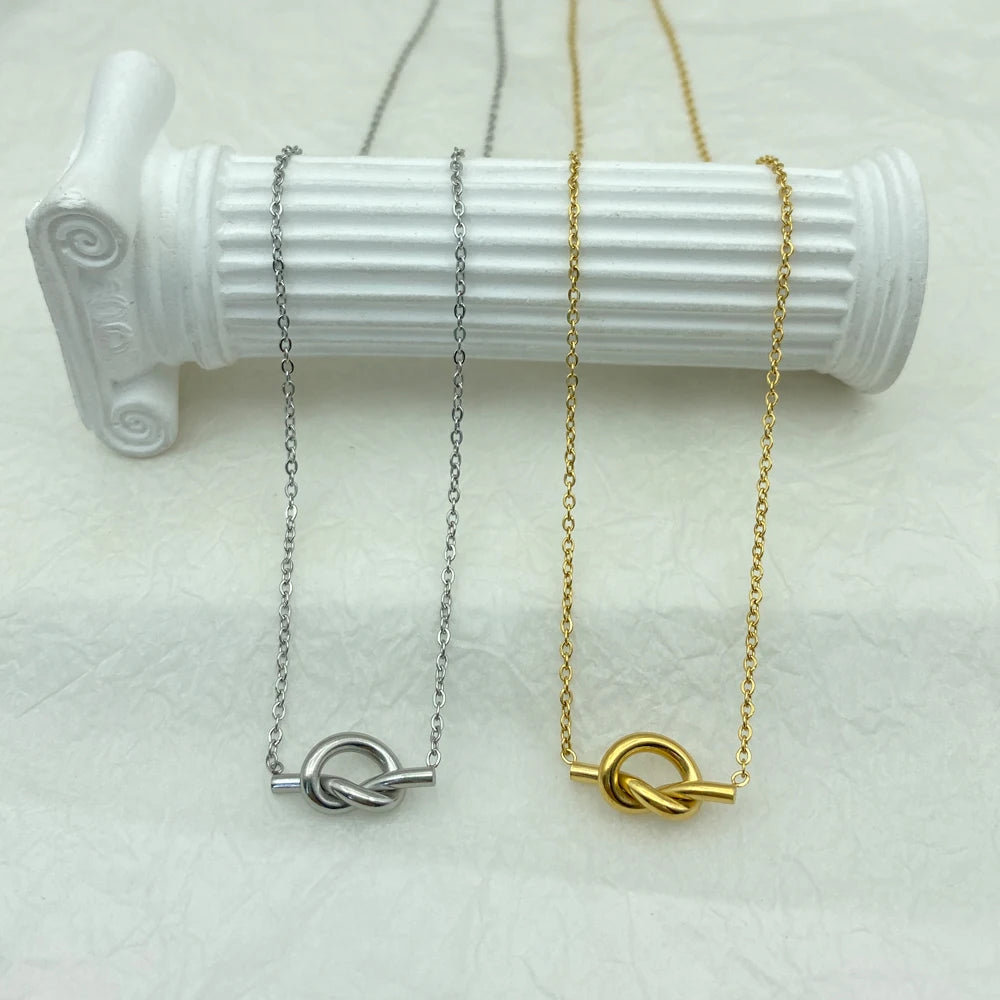 Stainless Steel Necklace for Women Gifts Steel Knotted Pendants Design Clavicle Chain Fashin Jewelry Korean Style