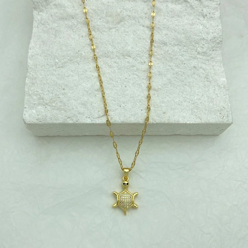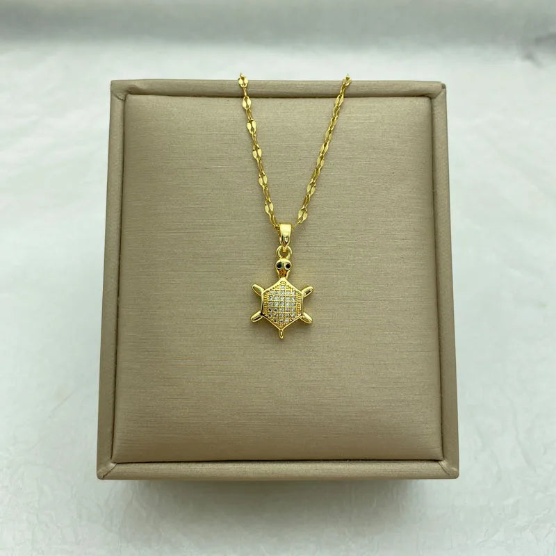 Gold color Cute Little Turtle Pendant Necklace Gold Stainless Steel Women's Necklace Jewelry Fashion Stainless Steel Accessories
