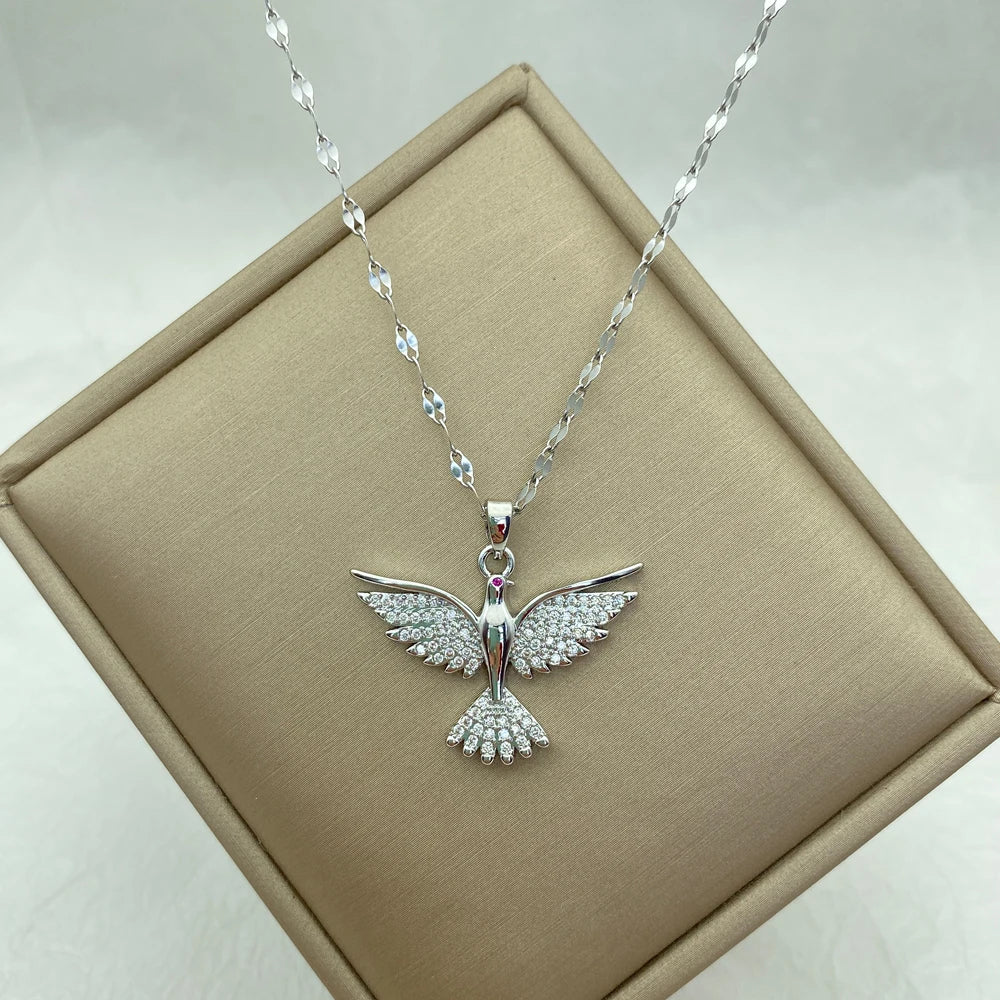 Gold Plated Eagle With Zircons Stainless Steel Necklaces For Women Gifts Fashion Jewerly Accessories Cute Bird Necklace New In