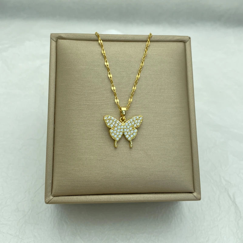 Gold Plated Necklace for Woman Gift With Stainless Steel Chain And Butterfly Zircon Pendant Fashion Jewelry