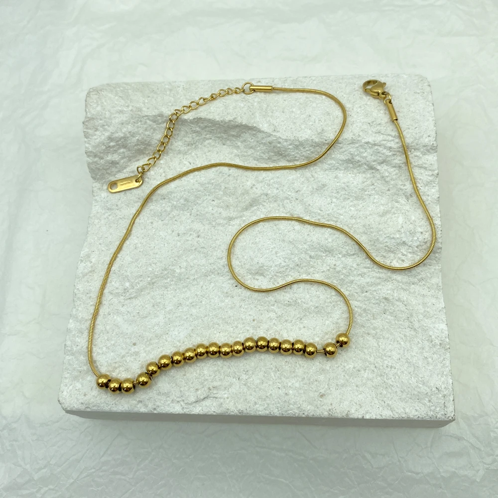 Snake Chain Stainless Steel Multi-drop Beads Necklace for Women