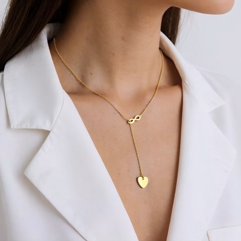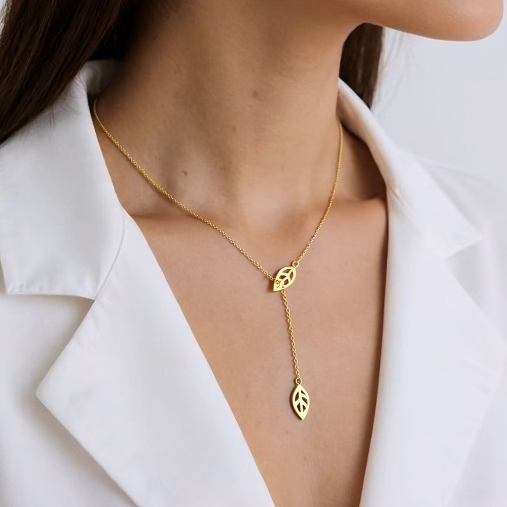 The chains are made of stainless steel and the pendants are made of copper and zircons