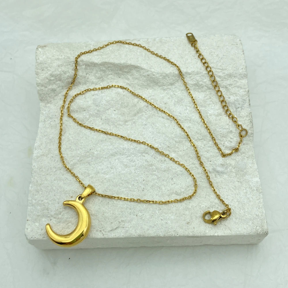 New Arrival High Quality Factory Price 18K Gold Plated Fashion Jewelry Competitive Price Moon Stainless Steel Necklace